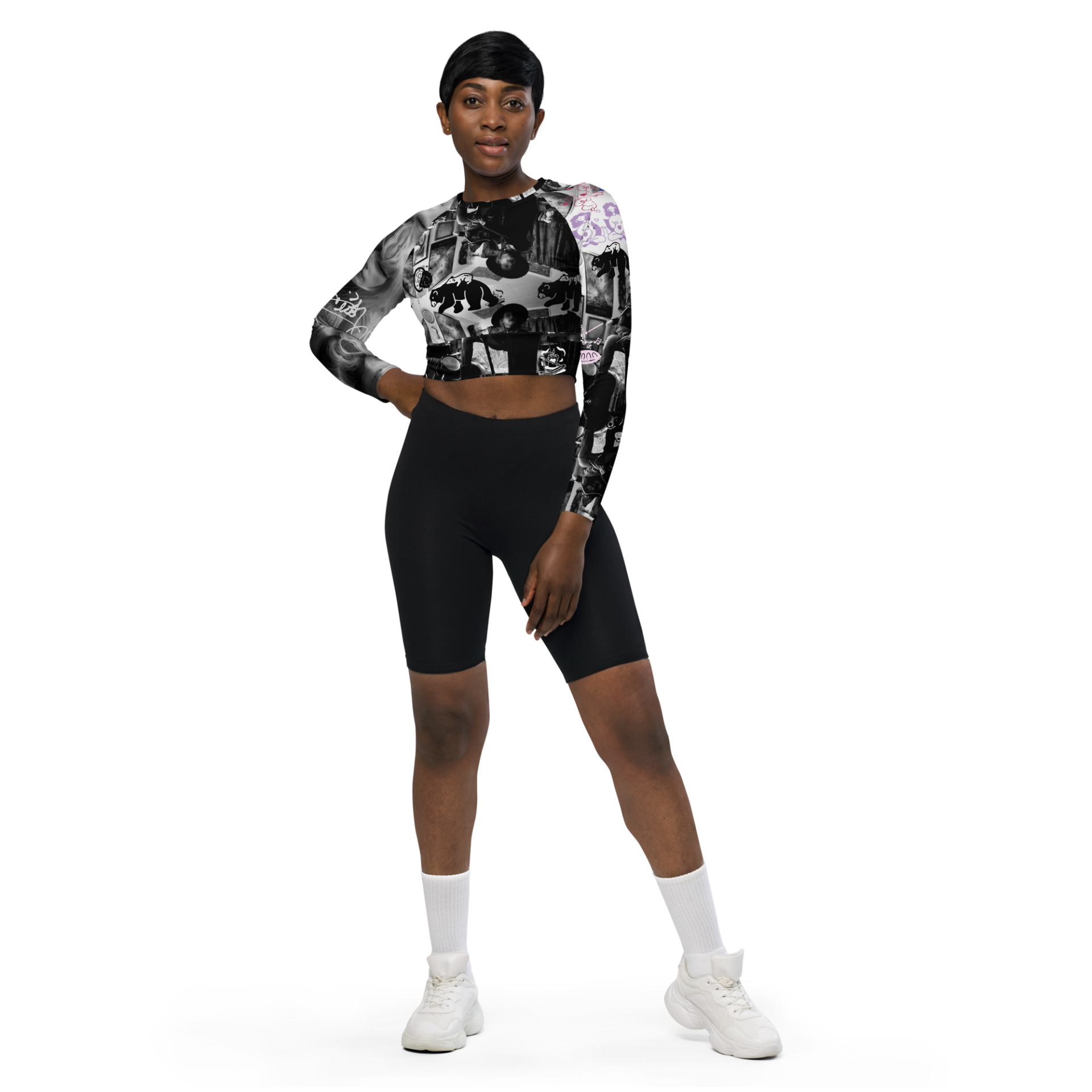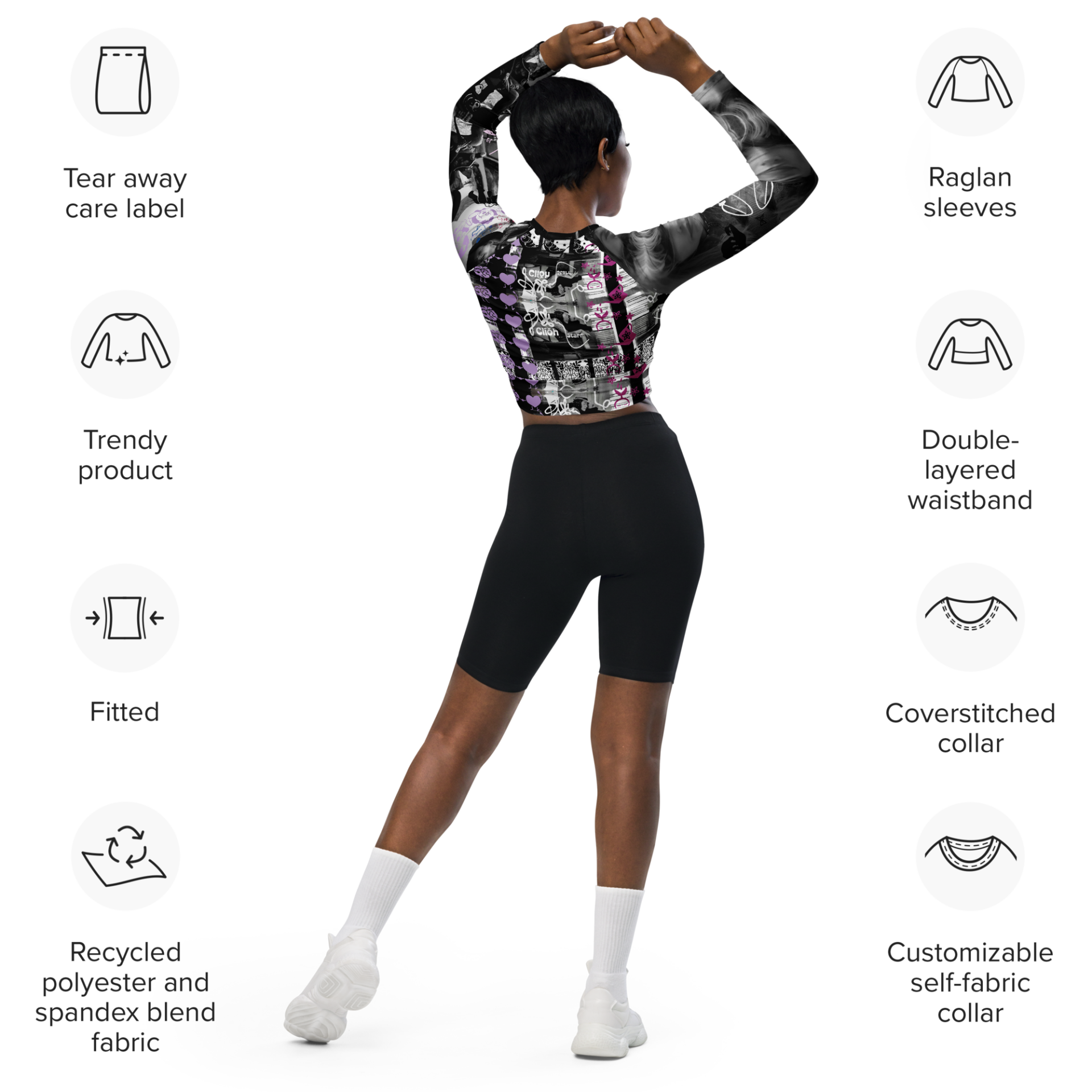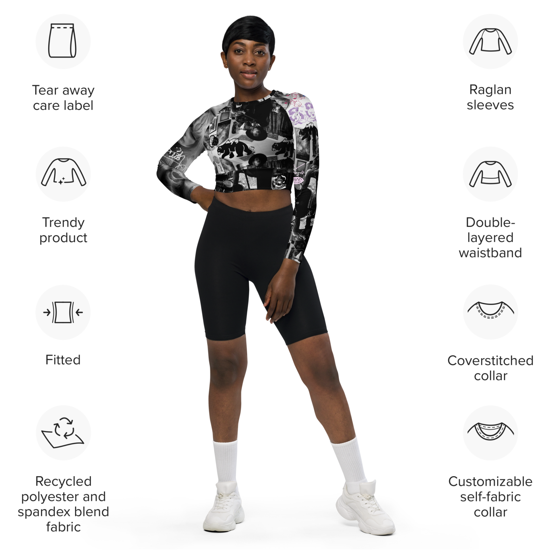 This long-sleeve crop top is made of recycled polyester and elastane, making it an eco-friendly choice for swimming, sports, or athleisure outfits. The crop top has a tear-away care label and a wide, double-layered Read more